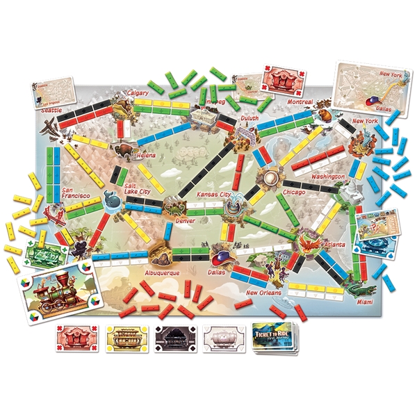 Ta dina första steg i Ticket to Ride med Ticket to Ride First Journey. Samla kort i olika färger, använd dem för att muta in tågsträckor med dina tåg och bli klar med dina biljetter för att vinna. Ticket to Ride First Journey är lätt att lära sig, går snabbt att spela och är den perfekta introduktionen till resten av Ticket to Ride-serien.Innehåller:1 spelplan med europeiska tågsträckor80 tågvagnar i olika färger72 tågvagnskort32 biljettkort4 Öst till väst-bonusbiljetter1 regelbokÅlder: 6+Antal spelare: 2-6Speltid: ca 15-30 minuter