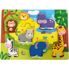 Träpussel Upphöjda Bitar Safari Toyrock Ett pussel med stora bitar som passar från 1,5 års ålder.
