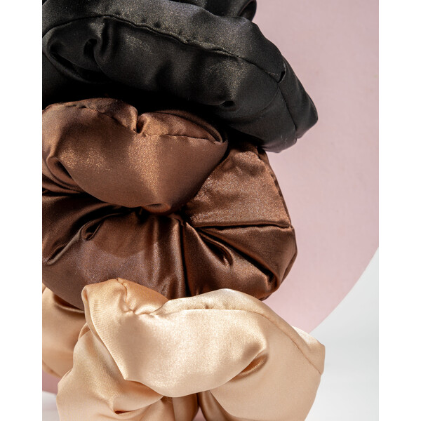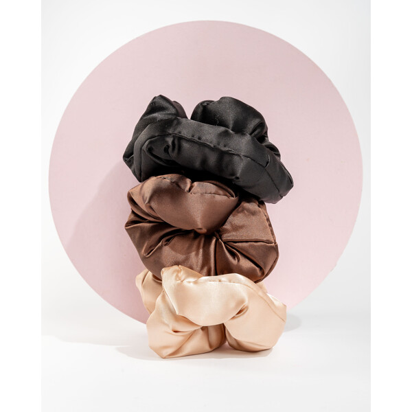 Ge din hårvårdsrutin en uppgradering med Brushworks Large Classic Cloud Scrunchies. Med en mjukt vadderad fyllning täckt av lyxig satin är de lika mjuka som ett moln och håller håret på plats utan att slita eller dra.Detta 3-pack i neutrala färger kombinerar stil och funktion – perfekta för alla tillfällen. Oavsett om du tar det lugnt hemma, är på språng under dagen eller gör dig redo för kvällen följer dessa mångsidiga scrunchies med utan problem. Den vadderade designen ger dessutom extra komfort, även under natten, och hjälper till att förebygga veck och böjningar i håret.
