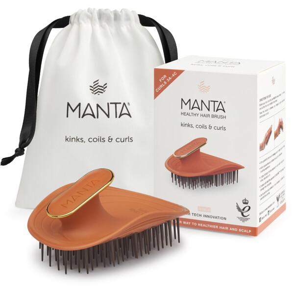 Upptäck MANTA® Kinks, Coils & Curls Healthy Hair and Scalp Brush, en innovativ hårborste särskilt utvecklad för att möta behoven hos lockigt och texturerat hår – från 3A till 4C. Den ger en skonsam men effektiv borstupplevelse som hjälper till att bevara hårets naturliga styrka och struktur.