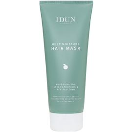 IDUN Minerals Deep Moisture Hair Mask är en extra rik, vårdande och vegansk hårinpackning med välgörande ingredienser såsom äppelsyra, ärtprotein och sheaolja.