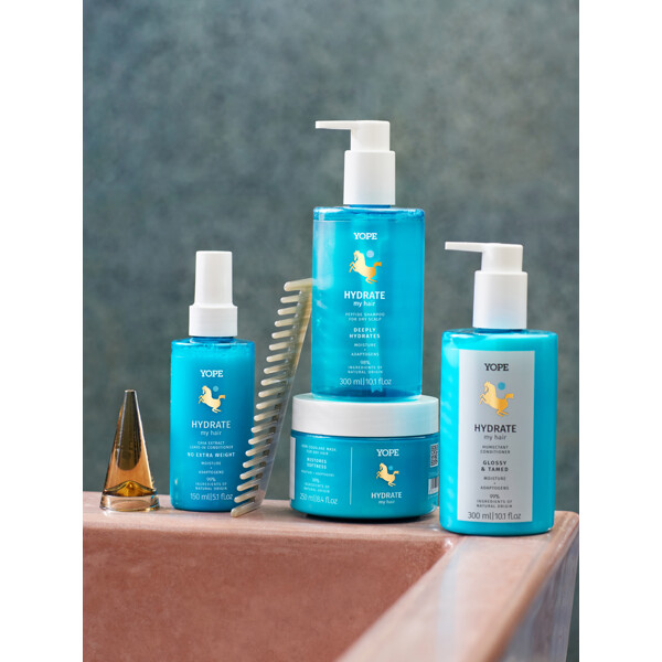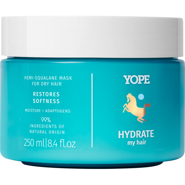 YOPE Hydrate My Hair Mask For Dry Hair ger BOUNCE-effekt och hår som glänser som en vattenyta. Mask för hår som behöver djup fukt. Den räddar även mycket torrt hår och ger omedelbar mjukhet och frisk glans.