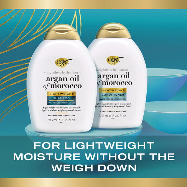 OGX Argan Oil Lightweight Shampoo är perfektion du har fint hår och letar efter ett fuktgivande schampo som gör håret mjukt och återfuktat utan att tunga ner det.