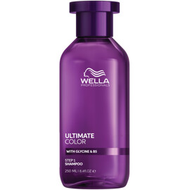 Wella Professionals Ultimate Color Shampoo är ett skonsamt schampo som lugnar hårbotten och hjälper till att bevara hårfärgens intensitet*. Det rengör effektivt samtidigt som det avlägsnar färgförvrängande metaller som kan påverka färgens klarhet och glans. Formulan innehåller glycin och en metallrenare som skyddar håret mot fria radikaler, medan Pro-Vitamin B5 återfuktar från hårbotten till topparna.