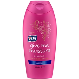 Blir ditt hår lätt torrt har du stor nytta av VO5 Give Me Moisture Shampoo. Det är ett schampo som är specialgjort för torrt hår. Det är berikat med 5 fantastiska, vitala oljor som ditt hår verkligen mår bra av: med argan -, jojoba -, aprikos -, avokado- och druvkärneolja. Mixen av oljor rengör och återfuktar håret intensivt och ger det skydd. Ditt hår blir rent och får fukt och näring. Lockar och toppar skyddas.