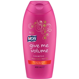 Börja med VO5 Give Me Volume Shampoo. Applicera i vått hår, arbeta upp ett skym och skölj. Applicera sedan VO5 Give Me Volume Conditioner från mitten av längderna till topparna. Låt verka i några minuter och skölj sedan grundligt.