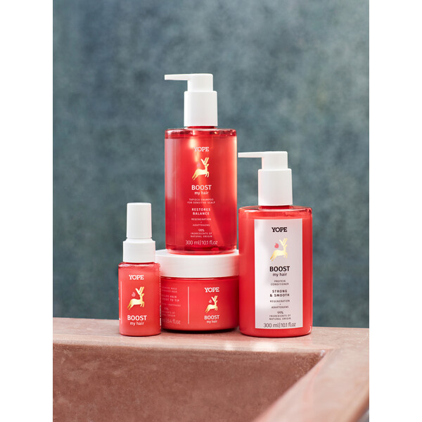 YOPE-PRODUKTER KOMPLETTERAR VARANDRA Beroende på behoven hos ditt hår och hårbotten kan du skapa ditt eget ritual genom att kombinera produkter från HYDRATE-, BOOST- och BALANCE-serierna.
