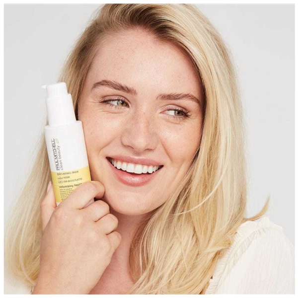 Clean Beauty Volumizing Liquid från Paul Mitchell ger fint hår en boost av volym, minne och glans. Perfekt primer innan föning för att få en längre och hållbar frisyr.