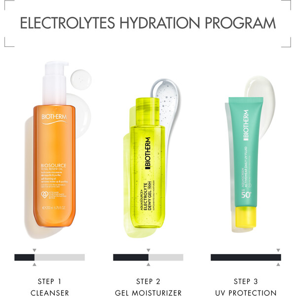 Aquasource+ Electrolyte Dewy Gel 100h från Biotherm är inspirerad av vätsketillförsel inom idrott.