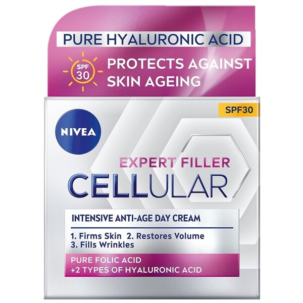 NIVEA Expert Filler Intensive Anti-Age Day Care SPF30 har en innovativ formel som kombinerar kraftfulla anti-aging-aktiva ämnen för att ge en fyllande effekt på 24 timmar* och motverka förlust av fasthet och volym, vilket ger din hud nytt liv!