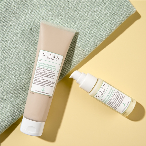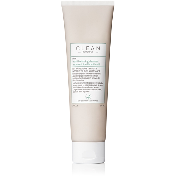 Clean RESERVE Buriti Balancing Cleanser är en ultrakrämig och aminosyrabaserad rengöring som tar bort orenheter och gör huden ren, balanserad, jämn och återfuktad. Huden rengörs, exfolieras och får ökad lyster. Resultatet blir en mjukare och jämnare hud med hälsosamt glow! Formulan är skonsam och kan användas dagligen, även av dig med känslig hy.