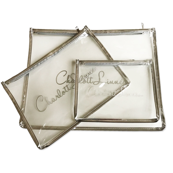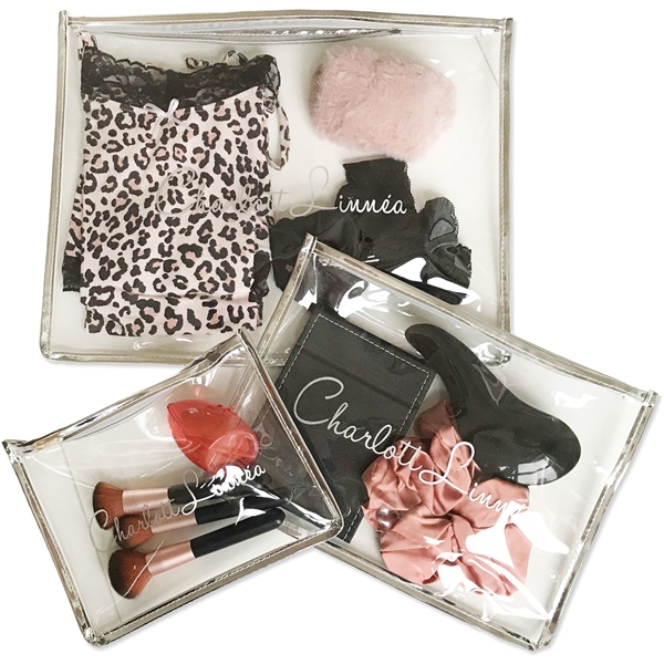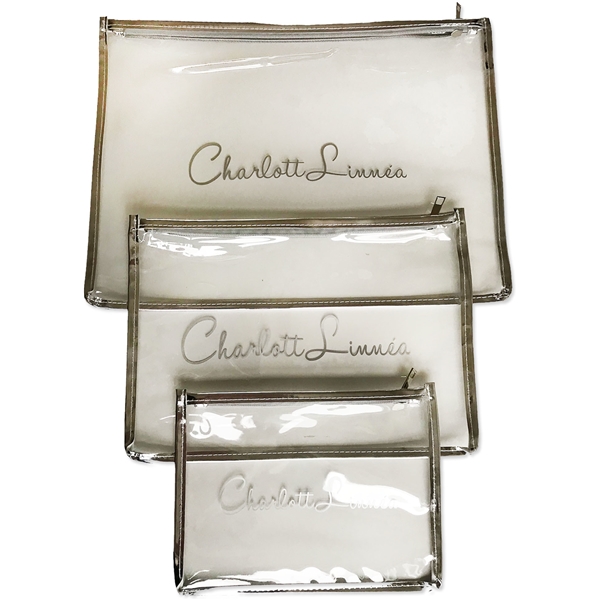Ett set om 3 i denna perfekta “organizer” i transparent material där du kan samla dina alla “löst liggande” personliga saker i väskan för att ha bästa ordning och reda.
