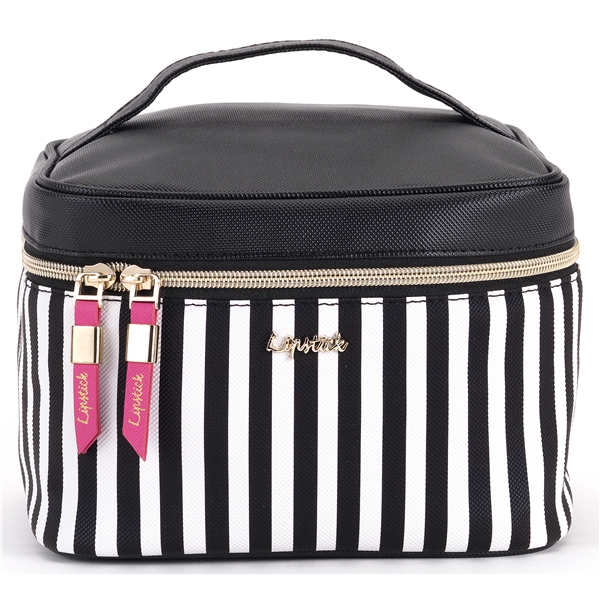 Smart, randig necessär i beauty box variant. Den har en cerisefärgad insida av tålig nylon som underlättar vid rengöring och en smart förvaring med flera fack. Storlek: ca 16 x 10 x 8 cm