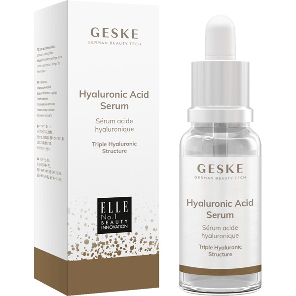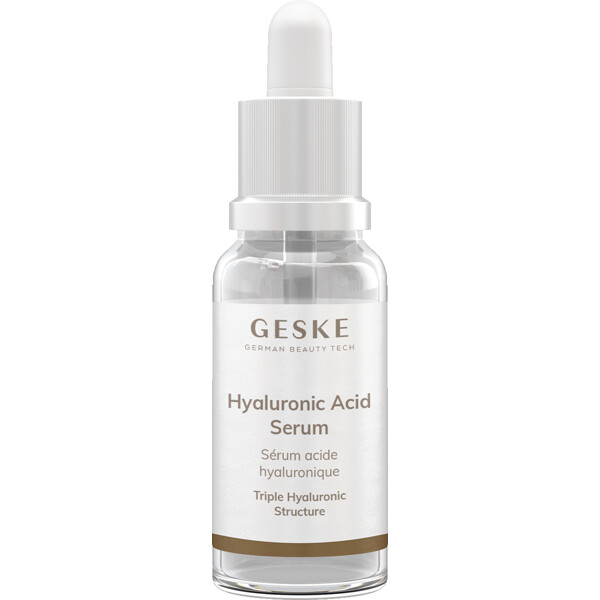Serum med hyaluronsyra är den perfekta följeslagaren till GESKE:s anti-aging- och huduppstramningsenheter och när den används i kombination får din hud en vacker lyster och en riklig mjukhet. Serumet har särskilt återfuktande egenskaper på torr hud tack vare sin trippel-hyaluronstruktur, som är ett lågmolekylärt ämne som gör att det tränger mycket djupt in i huden.