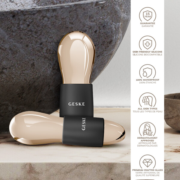 Formad av högkvalitativt borosilikatglas fräschar Geskes Cool & Warm Duo Eye Massager | 7 i 1 upp inte bara dina ögon utan också hela ditt ansikte genom att utnyttja dessa imponerande egenskaper: