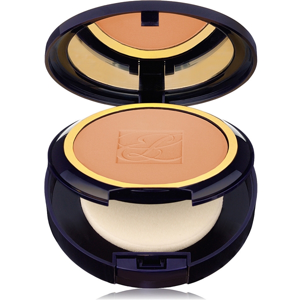 Double Wear Powder Makeup från Estée Lauder är ett kompakt puder som håller i 8 timmar och har en unik, dubbelsidig applikator som gör att du själv kan skapa den täckning du vill ha. Använd svampsidan för att applicera som foundation för puderlen perfektion och upp till medelhög täckning. Använd den sammetsliknande sidan för att applicera över flytande makeup som finishing-puder. Känns behaglig och ser naturlig ut, och håller oavsett aktivitet. Oljefri. Oljeabsorberande.