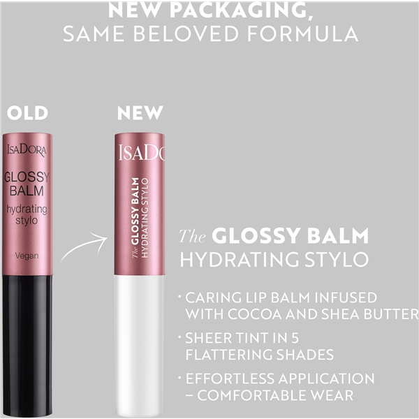 IsaDora Glossy Balm Hydrating Stylo är ett återfuktande, krämigt lip balm som vårdar dina läppar med skir färg och lyster.