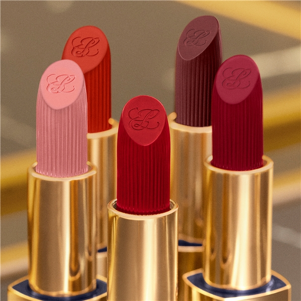 Dimensionell färg som smidigt glider på huden och ger en mjuk och silkeslen finish. Täckande läppstift med utfyllande, närande och vårdande egenskaper. (Vill du ha fler nyanser? Upptäck också våra Matte- och Hi-Lustre-finishar.)