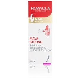 Mava Strong - Fortifying Base Coat från Mavala är ett stärkande och skyddande underlack som förebygger mjuka och tunna naglar som lätt bryts av. Det minskar fuktförlust och förhindrar då att naglarna skivar sig, tack vare ett komplex av mikroinkapslade aktiva ingredienser - eterisk olja av tea tree, E-vitamin, hydrolyserat keratin och arginine - och verkar därför återuppbyggande samt förbättrande på nagelns yta. Innehåller även kristalliserat resin skyddar naglarna och gör nagelplattan tjockare och mer motståndskraftig.