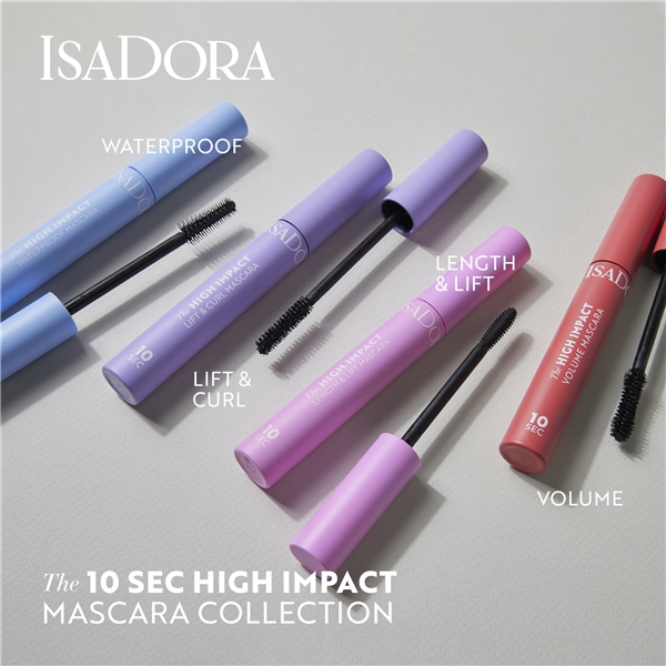 IsaDora The 10 Sec High Impact Waterproof Mascara är en vattenfast mascara för omedelbar längd och lyft som håller länge.