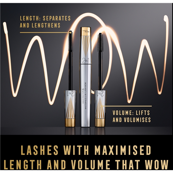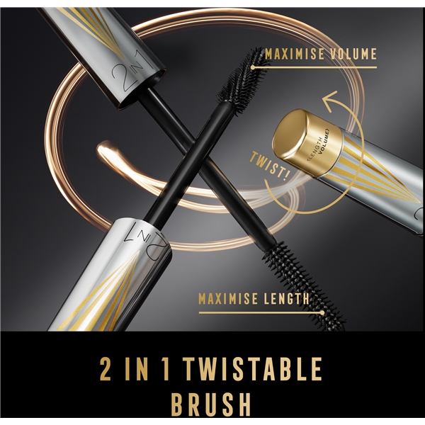 Max Factor Masterpiece 2 In 1 Lash Wow Mascara ger dig långa och extra fylliga fransar. Med en enkel vridning på borsthandtaget kan du förvandla din look på ett ögonblick. Separera fransarna och ge dem längd, eller lyft dem och gör dem fylliga, du väljer själv!