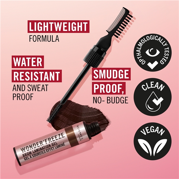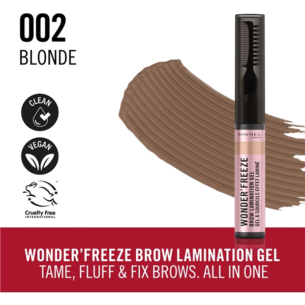 Rimmel Wonder Freeze - Brow Lamination Gel är en allt-i-ett-lösning för att tämja, fluffa och fixa dina bryn så att de håller hela dagen.