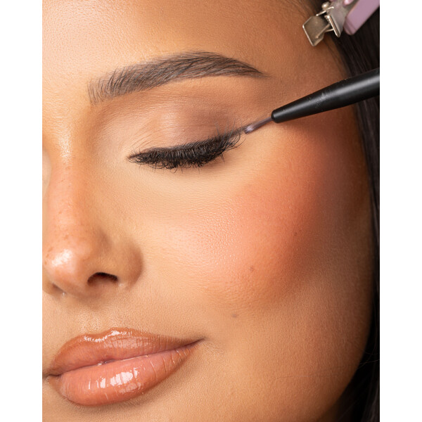- Doppa borsten i den liner du väljer och glid produkten längs din fransraden, börja från det inre hörnet och arbeta dig ut för att skapa en skarp kattöga-look