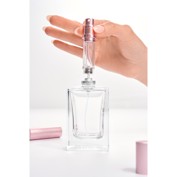 Ta bort spraykorken från din favoritparfym och placera atomiserns botten över parfymens munstycke. Pumpa upp och ner tills flaskan är fylld. Sätt sedan på locket – nu är din atomiser redo att användas. Spraya när du vill fräscha upp med din signaturdoft!