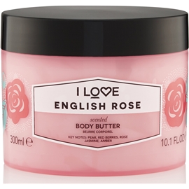 Modern romantik blandad med exklusiv brittisk trädgård full av rosor. Doften English Rose är som en nyplockad bukett blommor och doftar förföriskt av ros, jasmin, päron och söta röda bär.