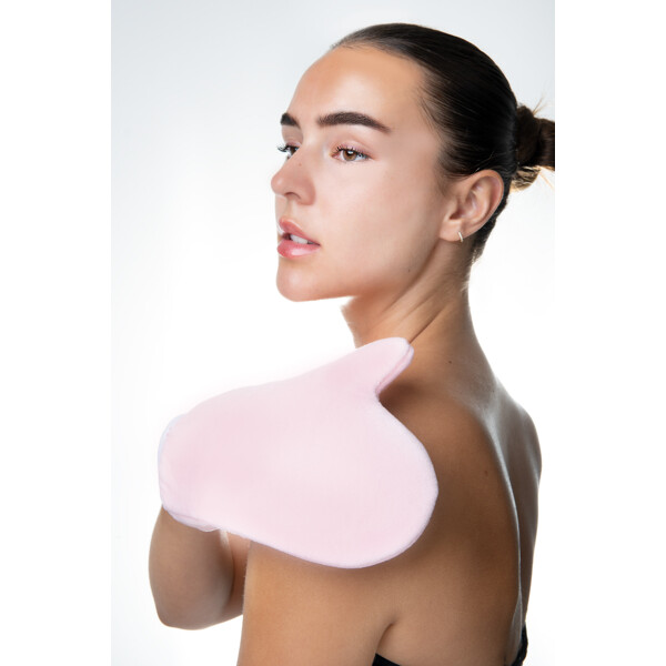 • Applicera brun-utan-sol-produkten på handsken eller direkt på huden – beroende på vad du föredrar.• Massera in produkten i huden med cirkulära rörelser för en jämn och felfri applicering.