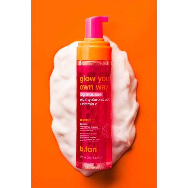 Glow Your Own Way The OG Glow Mousse Darkest från b.tan ger en omedelbar brun-utan-sol effekt. Applicera och få en enkel lyster, ingen sköljning krävs.