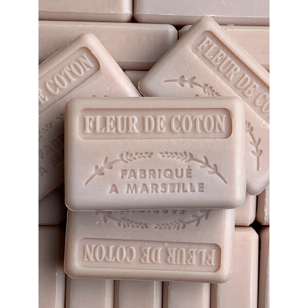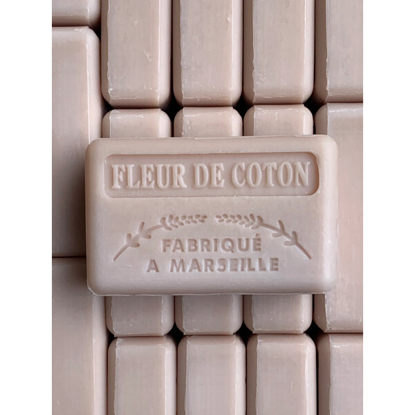 Handgjord fransk naturtvål från Marseille med en mild doft av bomull.
