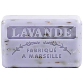 Den är tillverkad av naturliga och vegetabiliska ingredienser, löddrar rikligt och innehåller kross som ger en mild peelingeffekt. Tvålen sprider en rogivande lavendeldoft, exfolierar varsamt och lämnar huden mjuk och fräsch.