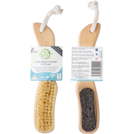 So Eco Lava Stone Brush & Pumice är en fotfil med naturlig lavasten på ena sidan för att exfoliera och mjukgöra fotsulorna genom att ta bort hård hud. De syntetiska borstarna på baksidan möjliggör en förbättrad upptagning av mjukgörande produkt till fötterna efter peelingen.
