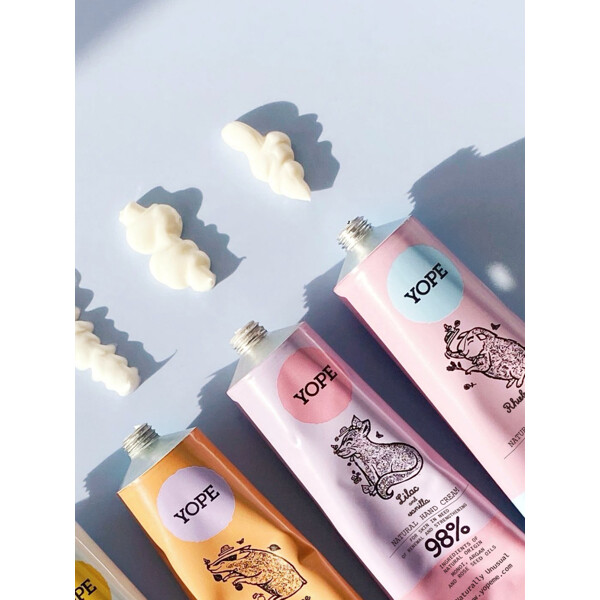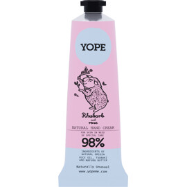 YOPE Rhubarb and Rose Natural Hand Cream är framtagen för torr hud som behöver en stark förnyelse. Den saftiga, söta och fräscha doften är inspirerad av smaken av en törstsläckande rabarberlemonad med en rosig twist.