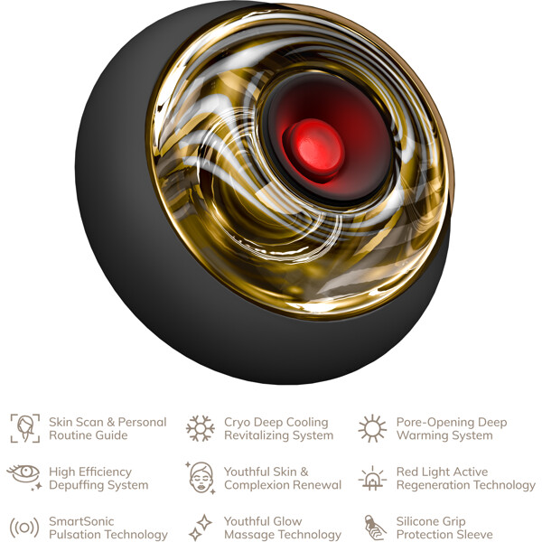 Formad av högkvalitativt borosilikatglas gör Sonic Cool & Warm Face and Body Massager | 9 i 1 underverk för att lugna din hud och ge den ett fastare utseende tack vare följande sensationella egenskaper: