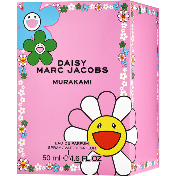 Den strålande rosa flaskan pryds av en iögonfallande kork där två ikoniska blommor och konstnärliga visioner möts: Murakamis färgstarka signaturblomma och Marc Jacobs klassiska Daisy. Tillsammans bildar de en harmonisk explosion av färg, glädje och fantasi – ett drömlikt uttryck som känns både tidlöst och elektriskt modernt.