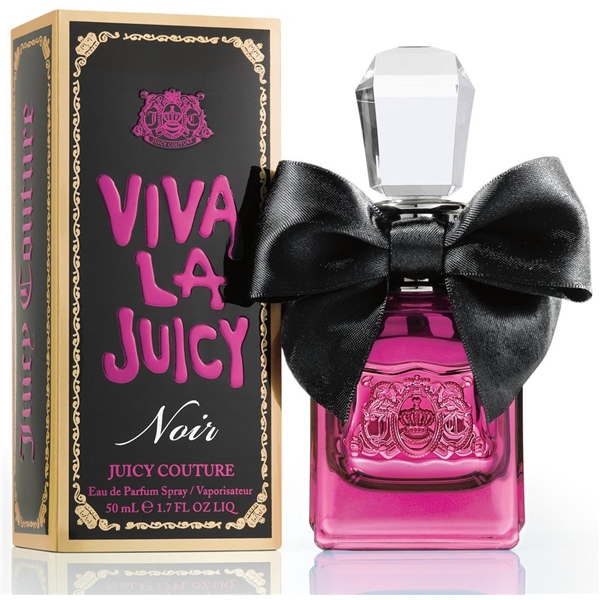 Viva La Juicy Noir från Juicy Couture Lansering: 2013 Doftfamilj: Blommigt fruktig gourmand Viva La Juicy Noir är kaxig, sensuell och förförisk. Den är en berusande tolkning av den ursprungliga Viva La Juicy som betonar den klassiska doftens saftiga bärnoter och gourmand-accenter med en aning kaprifol och sandelträ. Toppnot: vilda bär och mandarin Hjärtnot: kaprifol, gardenia och jasmin Basnot: amber, karamell, vanilj och sandelträ