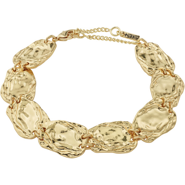 Det guldpläterade SHIFT-armbandet från Pilgrim är ett måste för dig som älskar unika accessoarer med karaktär. De platta, organiskt formade mynten har en rå, texturerad yta som ger smycket en cool handcrafted känsla. En perfekt kombination av boho elegans och klassisk stil.