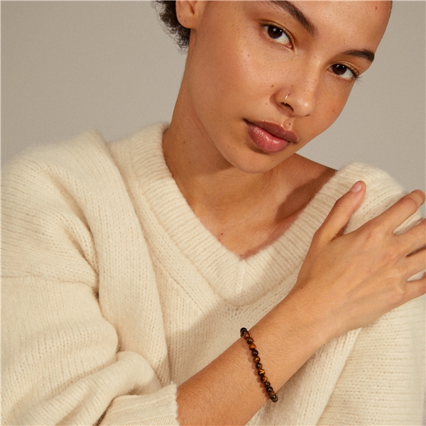 Find your inner balance! Armband med äkta Tigeröga-stenar i vackra runda former. En halvädelsten som motverkar stress och obalans. De runda halvädelstenarna är samlade i en slitstark lycraresår. En riktig evergreen som du kan mixa och matcha med andra armband för att skapa en unik och personlig stil.