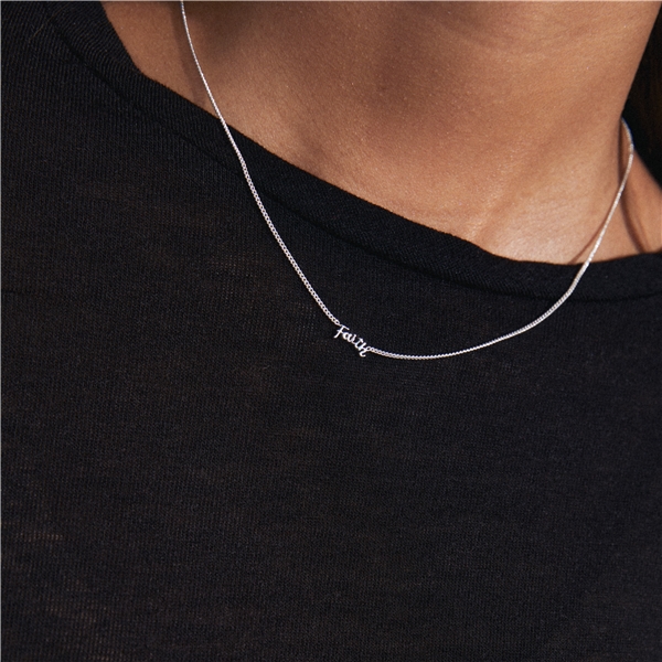 Med ditt nya signature piece får du ett elegant, silverpläterat halsband med ett litet hänge i kursiv skrift med ordet 'FAITH'. Ett genderless piece som kan bäras av alla och en perfekt presentidé till någon du älskar. Styla den för sig själv eller layer up för en personalized look.