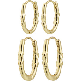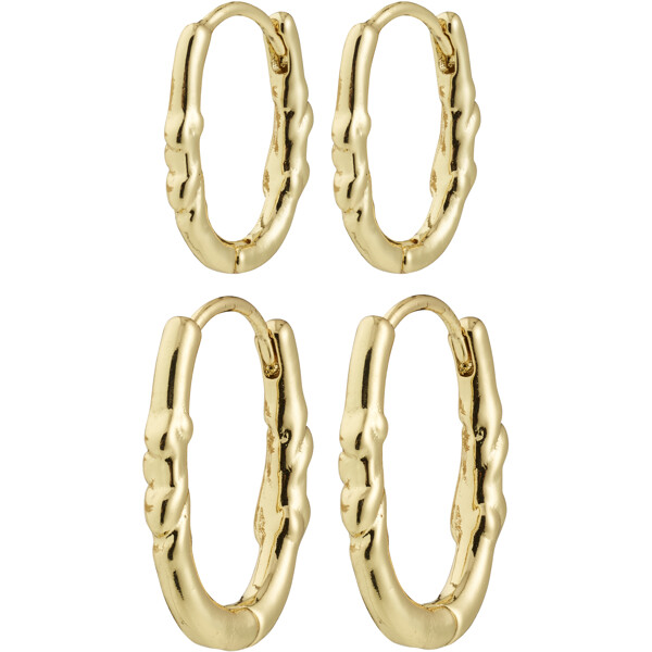 De guldpläterade SENSE-hoopsen från Pilgrim ger dig ett 2-i-1 set med ovala hoops i en organiskt formad design som skapar en perfekt mix av textur och shine. Designade med lättanvända klicklås är de ett måste i din smyckesamling – perfekta både för solo wear och stacked styling.