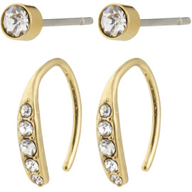 Med GIONNI-örhängena från Pilgrim får du ett 2-i-1-set som erbjuder oändliga stylingalternativ. De små guldpläterade örhängena med Preciosa-kristaller är dina vardagliga must-haves, medan de rundade öronkrokarna ger en touch på nästa nivå när du vill krydda din look.