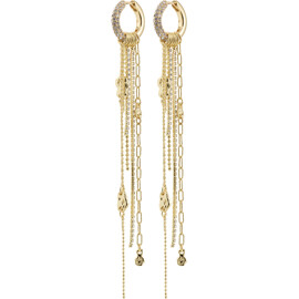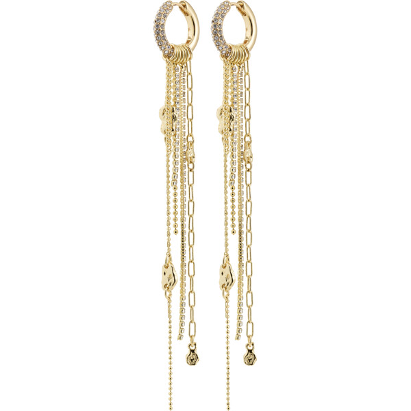 De guldpläterade DRUE-örhängena från Pilgrim är det ultimata valet när du vill addera en touch av enkel lyx till din look. De små hoopsen med Preciosa-kristaller smälter samman med en kaskad av kedjor och fina hängen, som skapar ett lekfullt, free-minded uttryck med en luftig känsla.