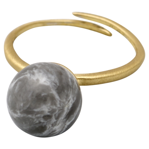 Guldplätterad ring med grå sten från Pilgrim som kan justeras till rätt storlek. Diameter: ca 2 cm. Diameter sten: ca 0,9 cm.