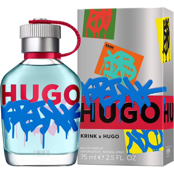 Den ikoniska HUGO-flaskan har förvandlats till en konstnärlig duk, där KRINK:s karakteristiska tag, färgdroppar och graffitiinspirerade mönster flödar över ytan. En röd rem och metallisk kork fulländar designen och förvandlar flaskan till ett samlarobjekt – en hyllning till modet att uttrycka sig och att stå ut.