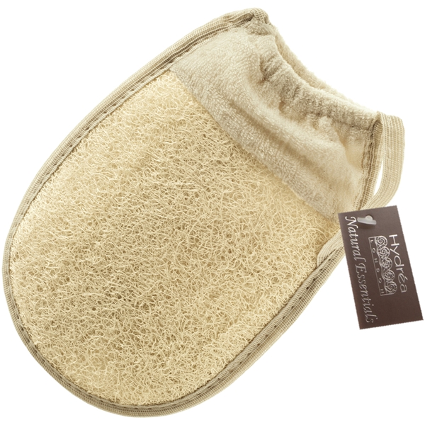 Egyptian Loofah Glove från Hydréa London är en handske av ekologisk luffasvamp och ekologisk bomull som skonsamt exfolierar huden vid bad eller dusch. Djuprengör porer och tar bort orenheter för att fräscha upp huden. Luffasvampen tar bort döda hudceller och gör det möjligt för huden att absorbera vårdande ingredienser i badskum/duschkräm. Genom att använda luffasvampen ökas blodcirkulationen i huden vilket förebygger och reducerar fina linjer och celluliter. Luffasvampen skapar ett härligt lödder av duschkrämen och eftersom den torkar väldigt fort efter användning minimeras bakterietillväxten. Svampgurka är en klätterväxt som är släkt med gurkan. Den är snabbväxande och dess frukt används i mat eller för kroppsvård under namnet Luffasvamp. Luffasvampen är en av världens bästa naturligt exfolierande svamp. Luffasvampen produceras genom att skörda fullvuxen frukt från svampgurkan och sedan låta den torka i solen så att enbart fruktens hårda innanmäte är kvar. Luffasvamparna från Hydrea London är ekologiskt odlade och handplockade i Egypten för att säkerställa högsta kvalitet.