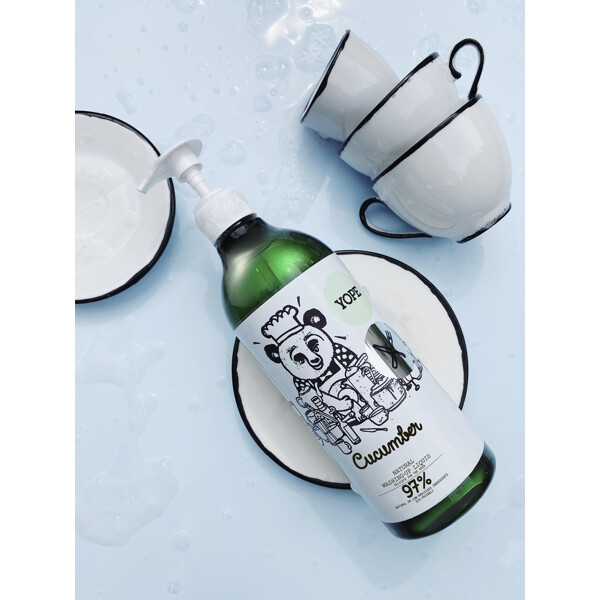 YOPE Cucumber Natural Washing-Up Liquid är en fantastisk kökshjälp som inte bara effektivt tar hand om disken, utan också skyddar huden och ger köket en lätt, uppfriskande doft. Vår lätta gelformula är enkel att använda och mycket effektiv. Tar effektivt bort fett och annan smuts, och lämnar disken ren och randfri utan att torka ut huden.