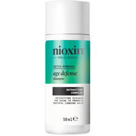 Nioxin Age Defense Shampoo i smidig rese-storlek, ett anti-age-schampo utvecklat för att ge fylligare, glansigare och friskare hår, längre*. Med rötterna i avancerad hårbottenvetenskap använder detta detoxande schampo Nutractive+ Complex med niacinamid, en hudvårdande ingrediens känd för att stärka en hälsosam hårbotten.